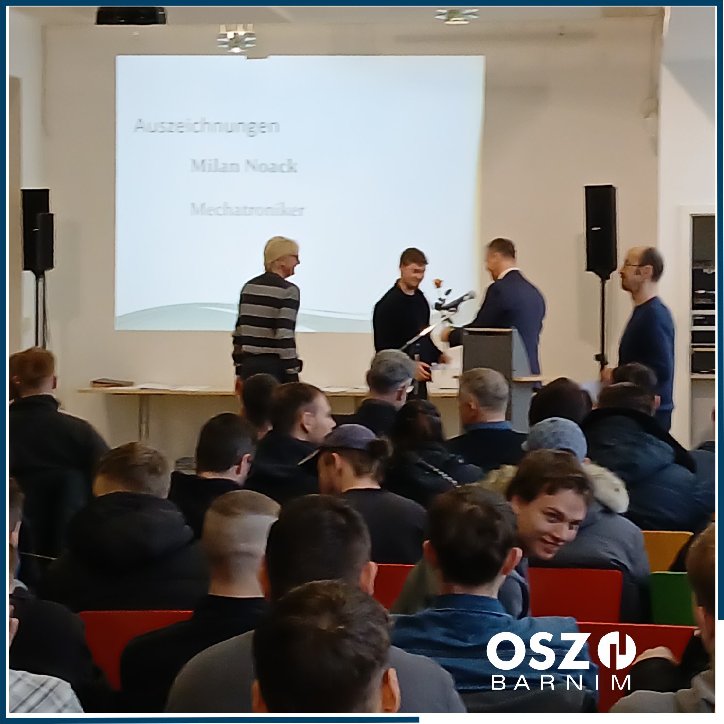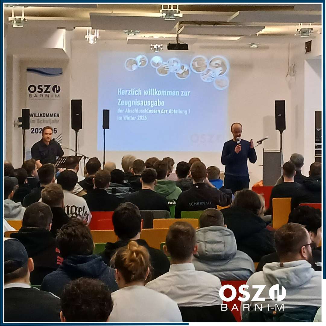 Abteilungsleiter Hr. Futh eröffnete und moderierte die Veranstaltung. In seinem Grußwort würdigte Schulleiter Hr. Haase die gezeigten Leistungen der Absolvent:innen und sprach Dankworte an Eltern und Lehrkräfte aus. Musikalisch begleitet wurde die Zeugnisübergabe von Hr. Skale-Flöther.